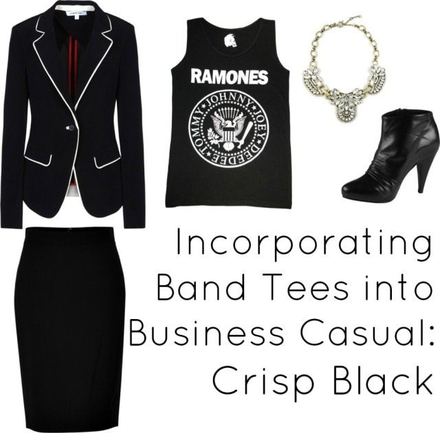 I work in a corporate office as a call center representative. My office has a business casual dress code, but we took the last two months off and were just casual. I was very excited about this, because I can wear t-shirts – specifically band t-shirts. Alas, casual months is coming to an end. Is there a way to incorporate band t-shirts in a business casual setting?