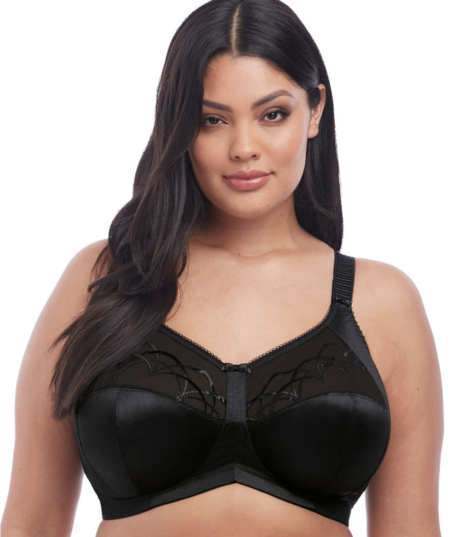 The Cate bra from Elomi is available in bands 36-48 and cup sizes B-G. It is usually available in black and ivory.