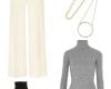 A way to make non-suiting separates look both professional and luxe is to create a monotone ensemble. Shades of ivory and cream, greys, taupes, and even blush pink together can make a lower-price separate look more expensive. By having subtle variations in the colors means you don’t need a matched set; winter white jacket with ivory pants can look like a miss; paired with a cream turtleneck and pearl jewelry the combination look purposeful as well as elegant.