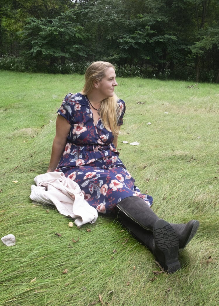 The fabric of the Dawn Dress feels like some kind of rayon and it has a very nice drape and weight.  Like the jumpsuit, the dress was very well made.  Also like the jumpsuit, the top of the dress was absolutely enormous on me and not in an intentional, cottage-core, chic kind of way.  With the print and the drape, it sort of looked like I was wearing a floral couch cover.