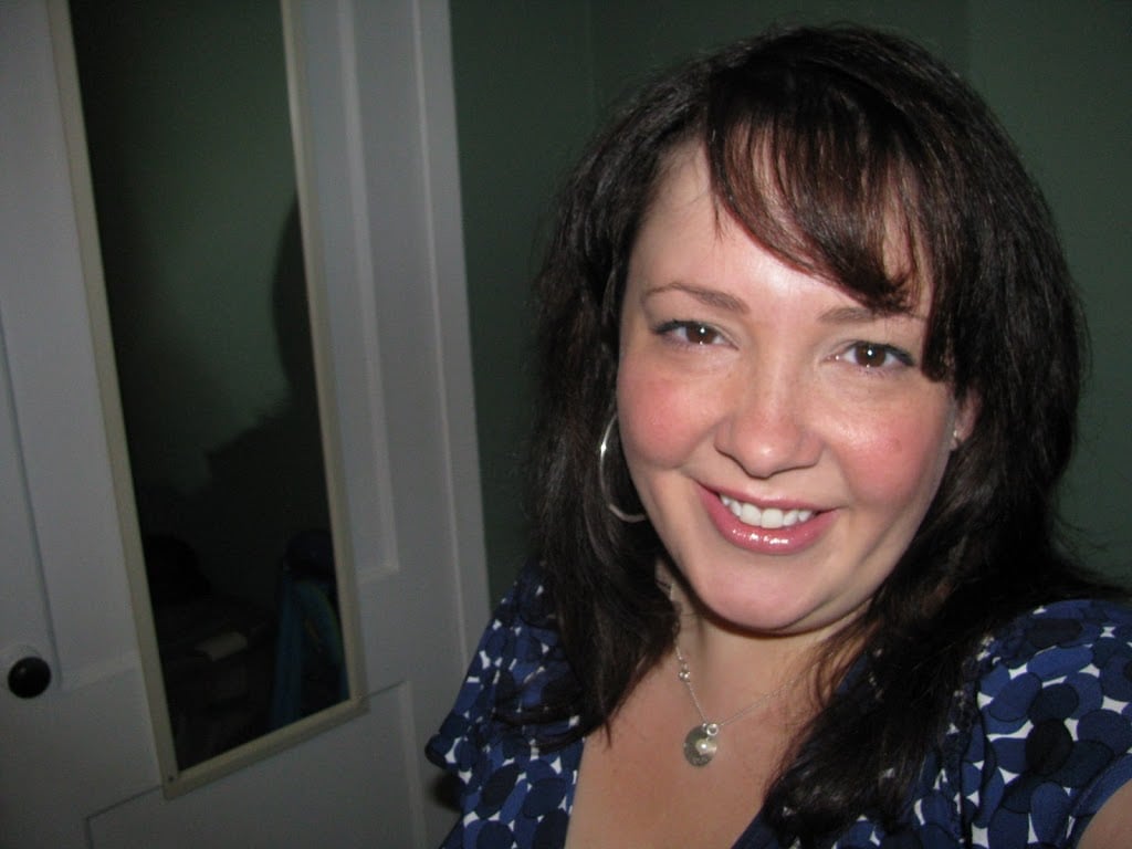 This is me on Wednesday. Blue print matte jersey wrap dress from Ann Taylor, red patent leather t-strap sandals from Sofft.