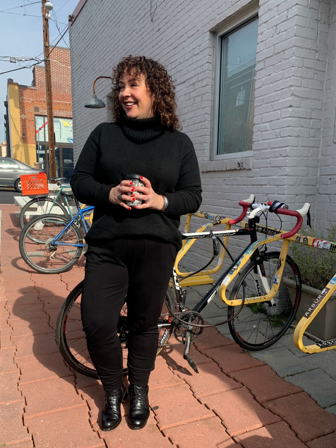 Alison, you look fantastic in the black sweater with the pink trousers! They make your legs look so long!