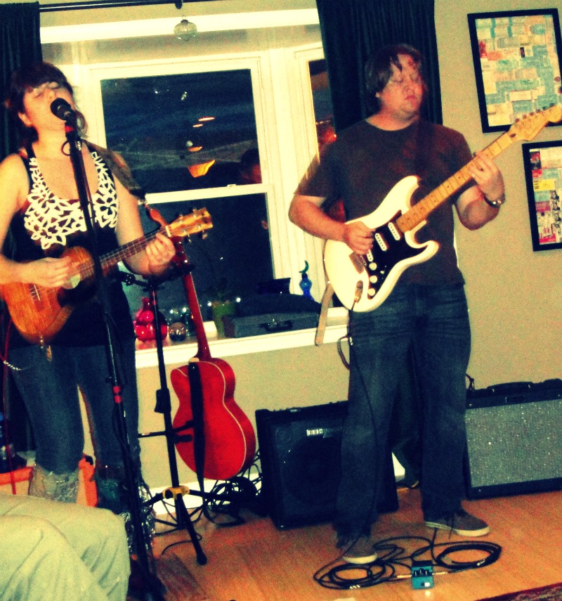 The party was SO MUCH FUN! I couldn't believe my house could hold so many people! And to think, I had a band rocking out at my house! The Galt Line was amazing – can't believe how much sound can come from two folks. Everyone was enjoying it, and after their set some of our musician friends jammed with them – had live music almost all night! The rain didn't slow us down, my husband put up EZ Ups and tarps outside – felt like Bonnaroo!