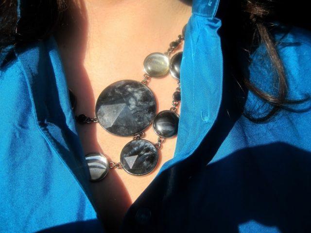 This is the same shirt as my green one, purchased on the same day. I can remember stopping in Ann Taylor and my eye went right to these two amazing colors on the wall. Had to have them, and I am so glad that they fit me again!
