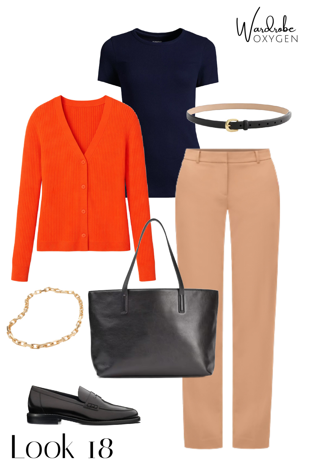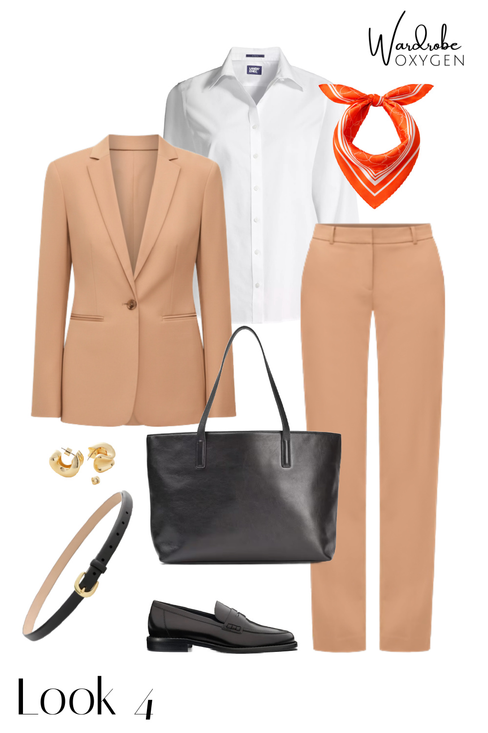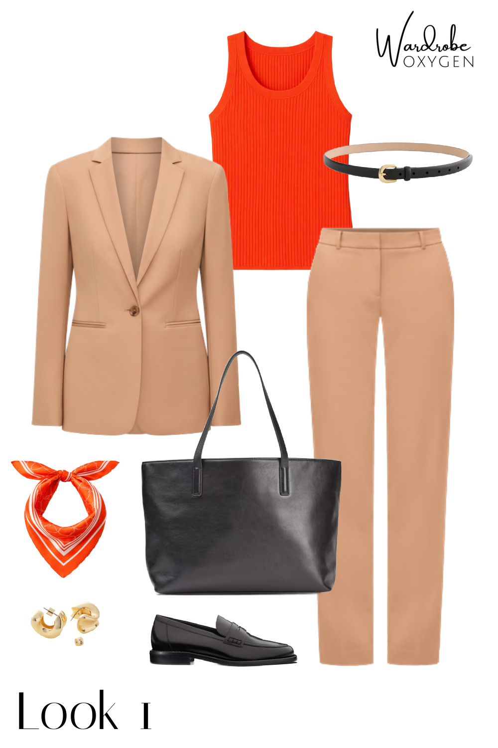 The result is a polished, work-friendly wardrobe built around a camel neutral base with pops of juicy orange and vintage lime that feels fresh without being costumey. And to show the versatility of this combination, I have created 28 different looks that will take you from boardroom to Casual Friday to weekend, as well as from now into spring.