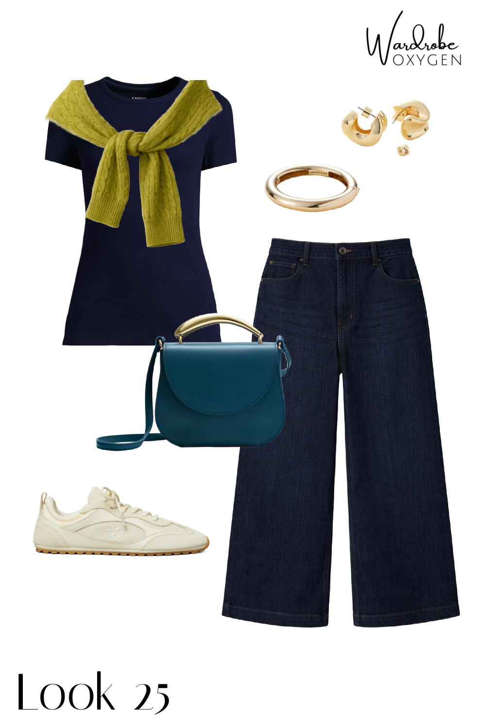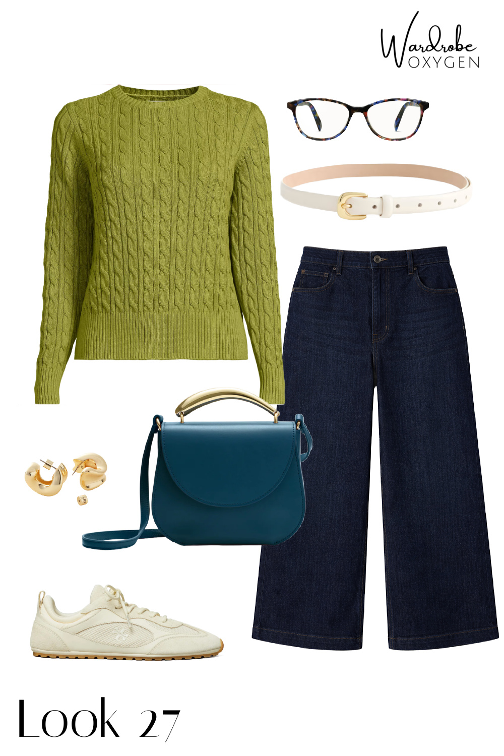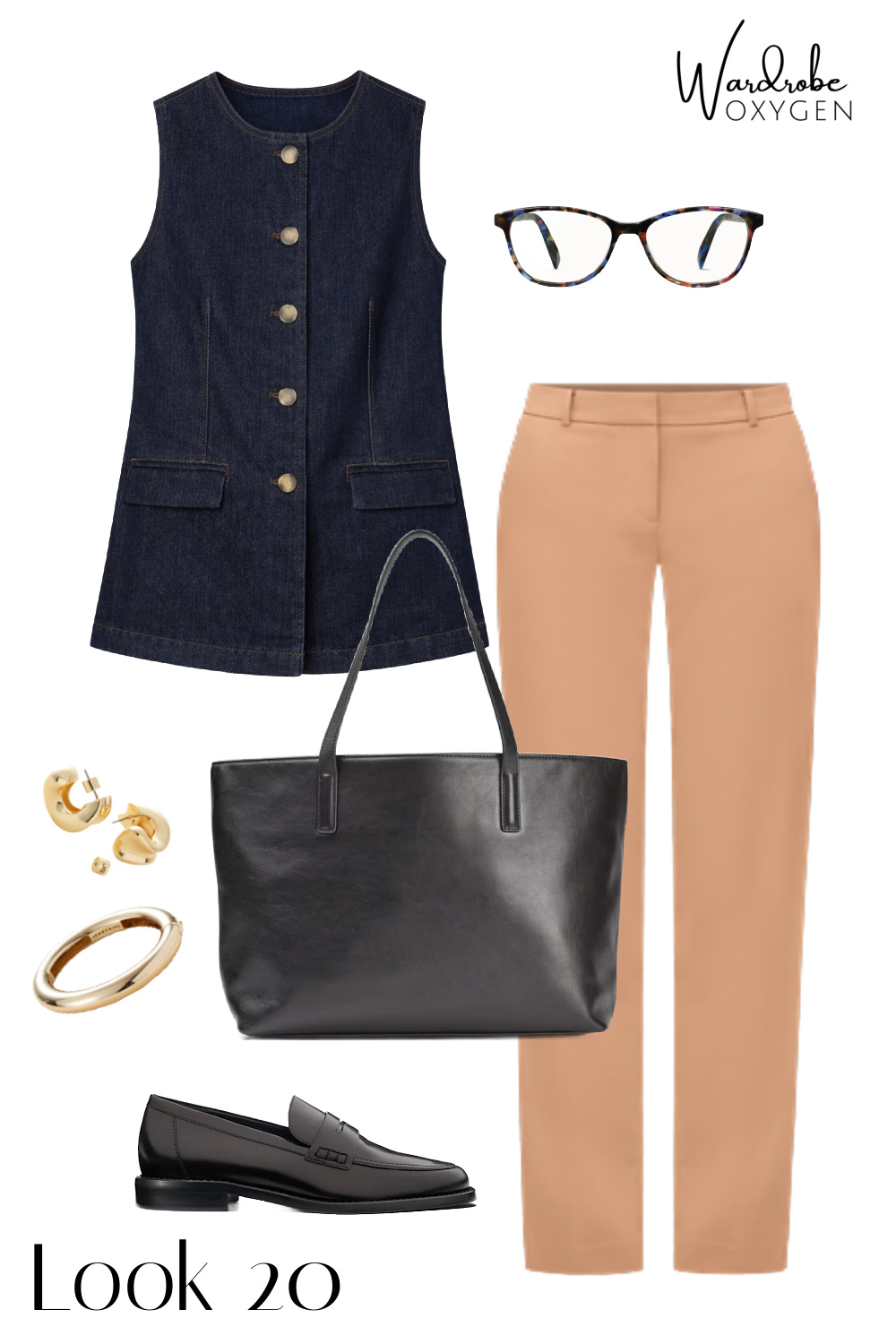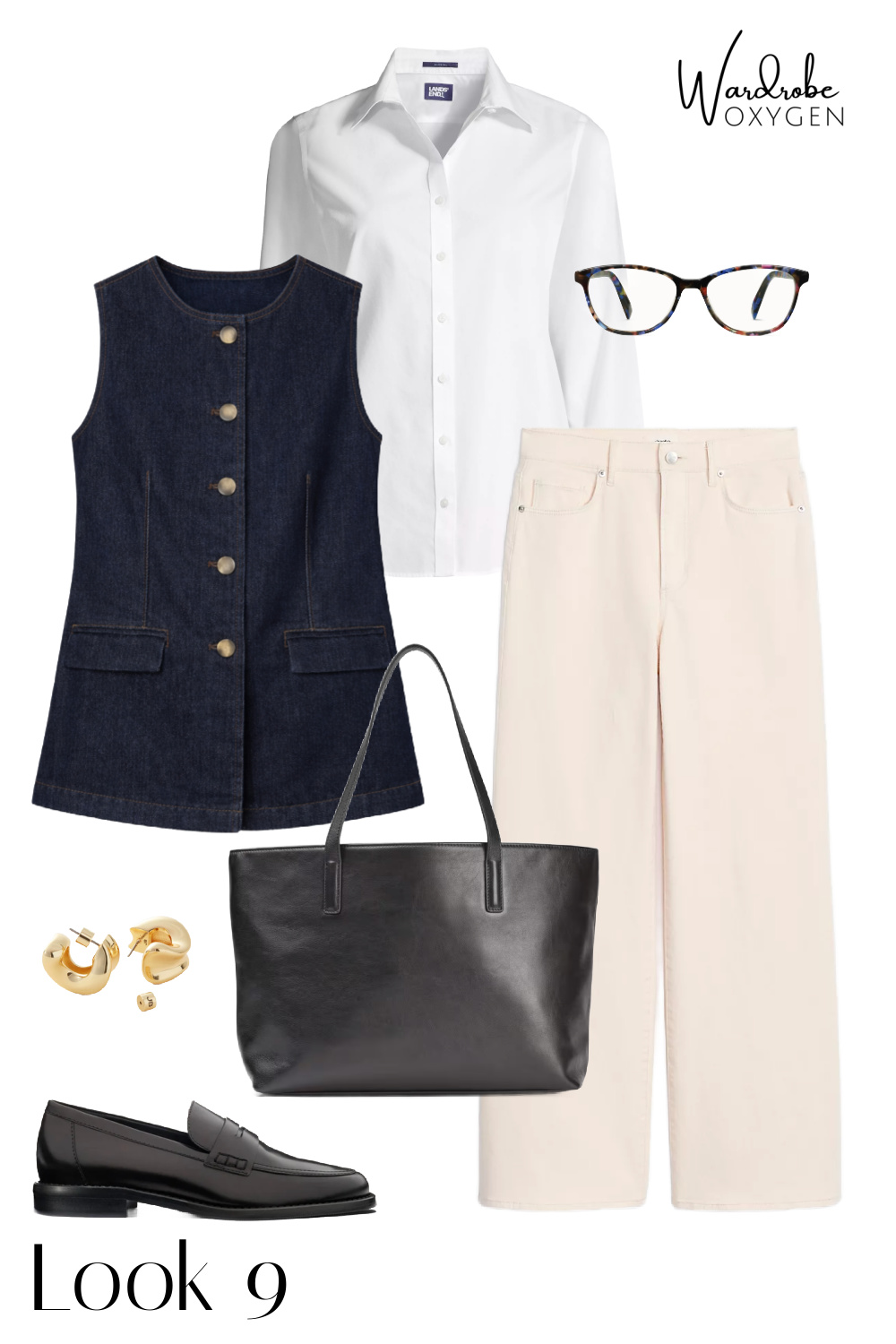 I always have pieces I own or am considering buying in my capsule wardrobes and this one is no different. I own the lime sweater in a different color and other sweaters in that same green. I ordered the denim vest and matching cropped jeans, seeing it as a more versatile and modern alternative to my Talbots denim mini capsule wardrobe. I own the tote, the ribbed tee, the jeans in a different wash, a previous year version of the tank, the belts, and while I don't own the loafers, I have many shoes from the brand and a similar pair that offers metatarsal support and a bit more width.