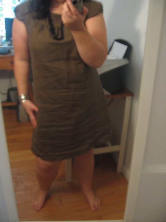 The day was hot and humid and I know the Ren Fest is a place where you walk a lot, get sweaty, accidentally spill cider down your front (oh, maybe that is just me the klutz) so I wanted to dress comfortably. Olive linen shift from Old Navy (with bike shorts underneath for comfort and decorum when sitting on the ground), black Reef “Sandy” flops, silver hoops and cuff, black coral necklace from Mexico.