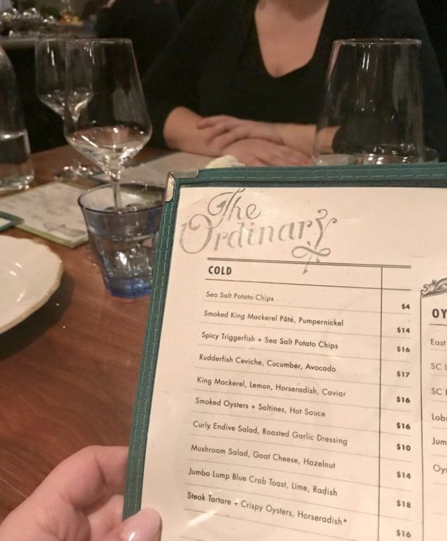 Our dinner reservations were just down the block at The Ordinary. Read any blog by any stylish 30-something who has visited Charleston and they likely will say The Ordinary is one of their favorite places to dine. I wanted to check it out and see what all the hype was.