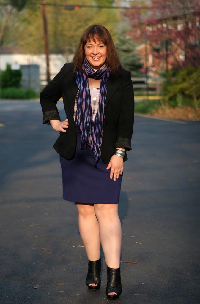 Blazer – Ann Taylor (similar) Scarf – c/o Nordstrom Rack (similar) Pants – LOFT (similar) Boots – DUO “Catalonia” Necklace – LOFT (similar) This is an oversized square scarf, I folded it on the diagonal and tied it like a bandanna with the points hanging in front. Tucked the points into my pants and it…