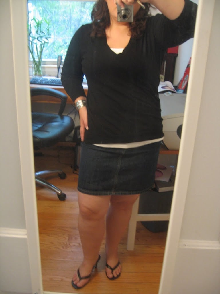I've raved before about the Universal Standard NTN bodysuit; I now own a full-length black one and a knee-length navy one. And the navy one I enjoy for activities like sculling or canoeing, but the black one gets a LOT of wear. And I over a year of regular wear and occasional tumbles in the clothing dryer, it still looks and fits great.
