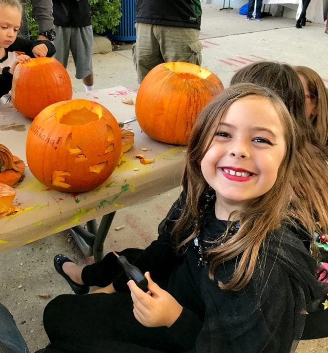 For the first hour it's set up for little kids with smaller pumpkins and washable paint for decorating them and kid-friendly entertainment like a clown.